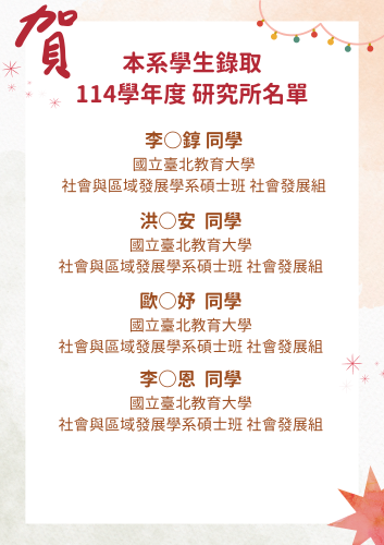 賀!! 本系學生錄取114學年度研究所名單(陸續更新中)
